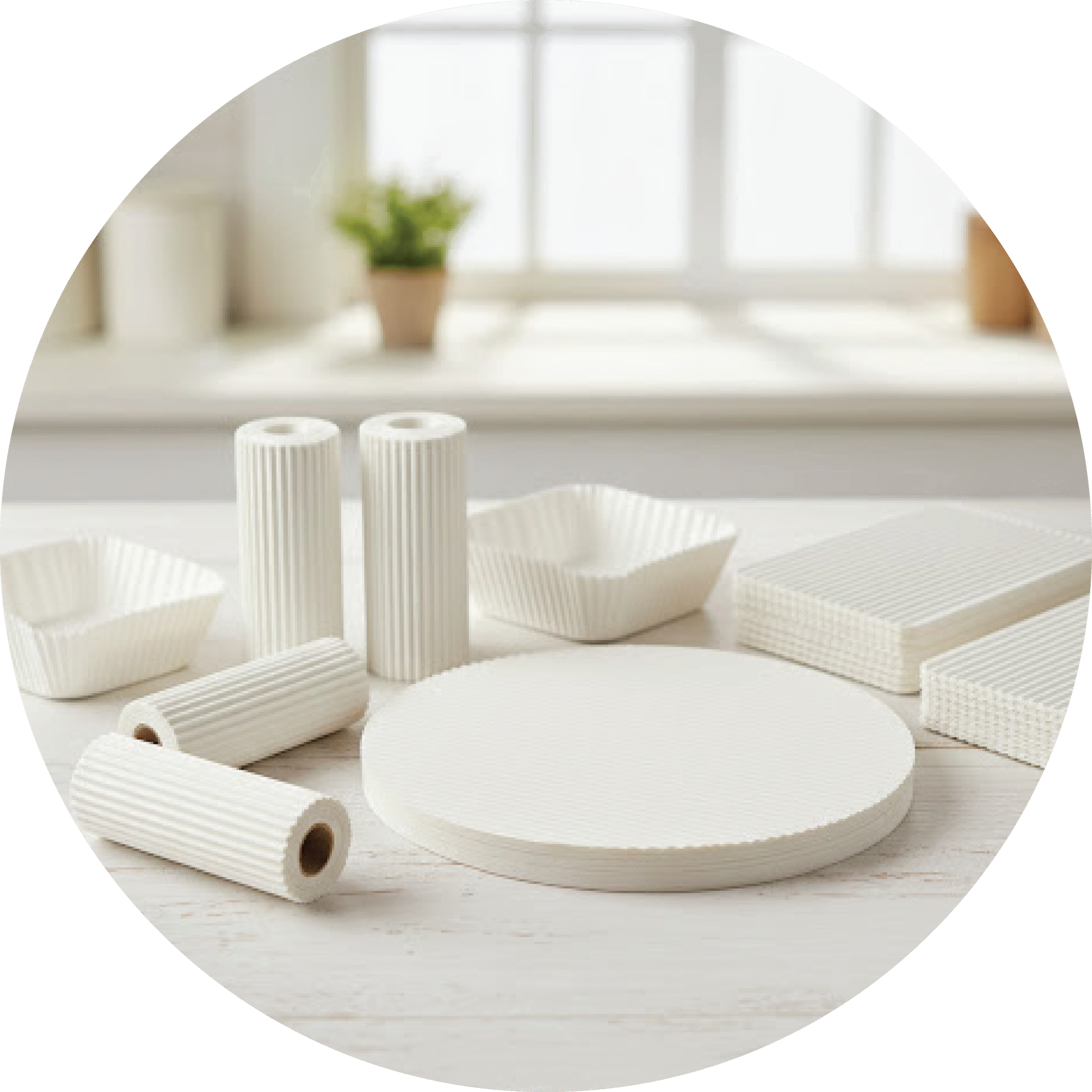 Oven-safe, non-stick baking sheets made from food-grade paper. Ideal for cookies, pastries, and multipurpose baking, reducing cleanup while being environmentally friendly.