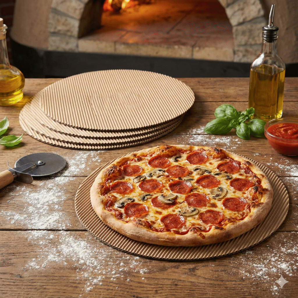 Food-grade corrugated sheets, ideal as pizza liners or for other food packaging applications. Durable, hygienic, and designed to maintain product integrity.