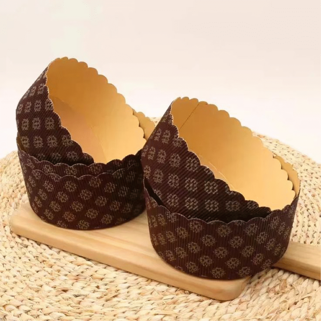 Traditional panettone paper baking molds crafted for festive breads. Oven-ready, grease-resistant, and recyclable, they preserve authenticity while enhancing presentation.